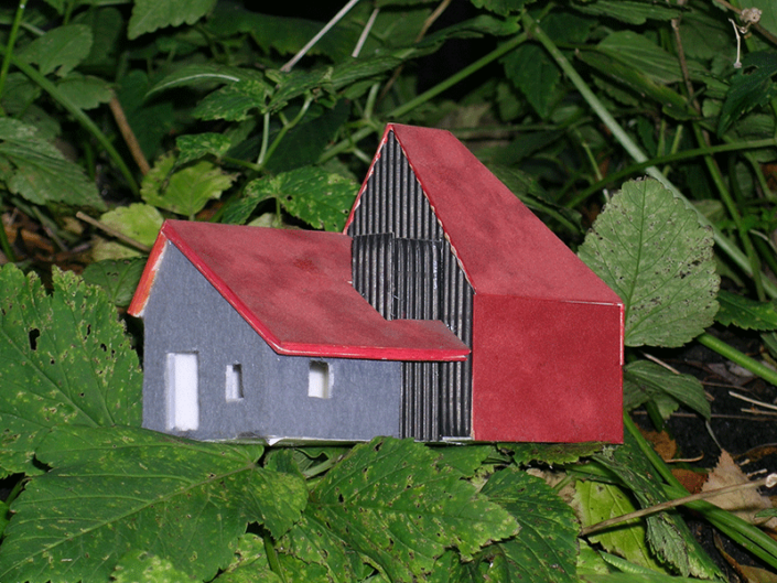 Het ontwerp is mede daarom gebaseerd op de kapberg: gesloten vlakken van oranje dakpannen en verticale zwart geteerde planken, die samen een krachtig ruimtelijk beeld opleveren.