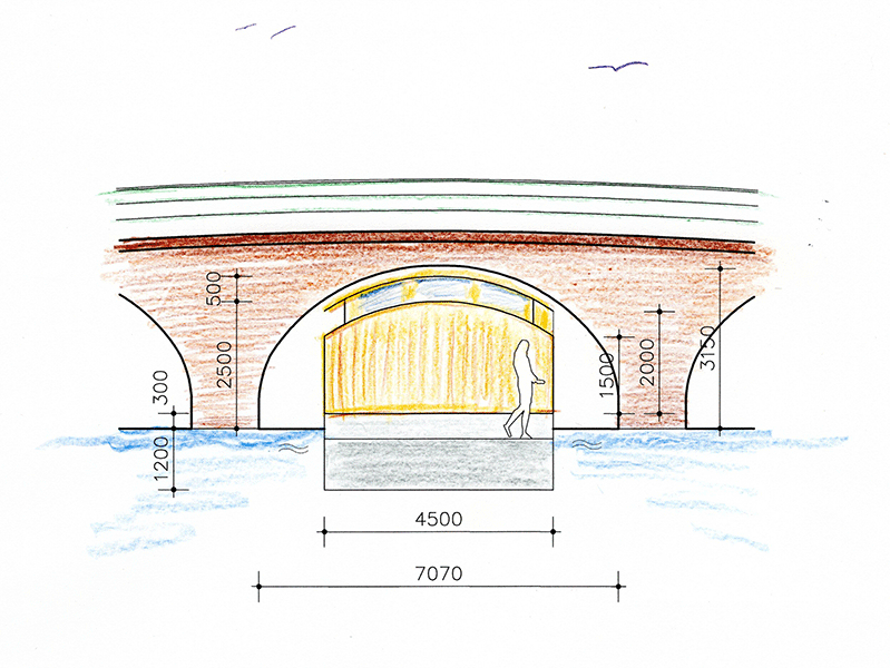 Wat we wel graag willen is een gekromde dwarsdoorsnede, zodat de nieuwe boot moeiteloos onder de brug door gaat.